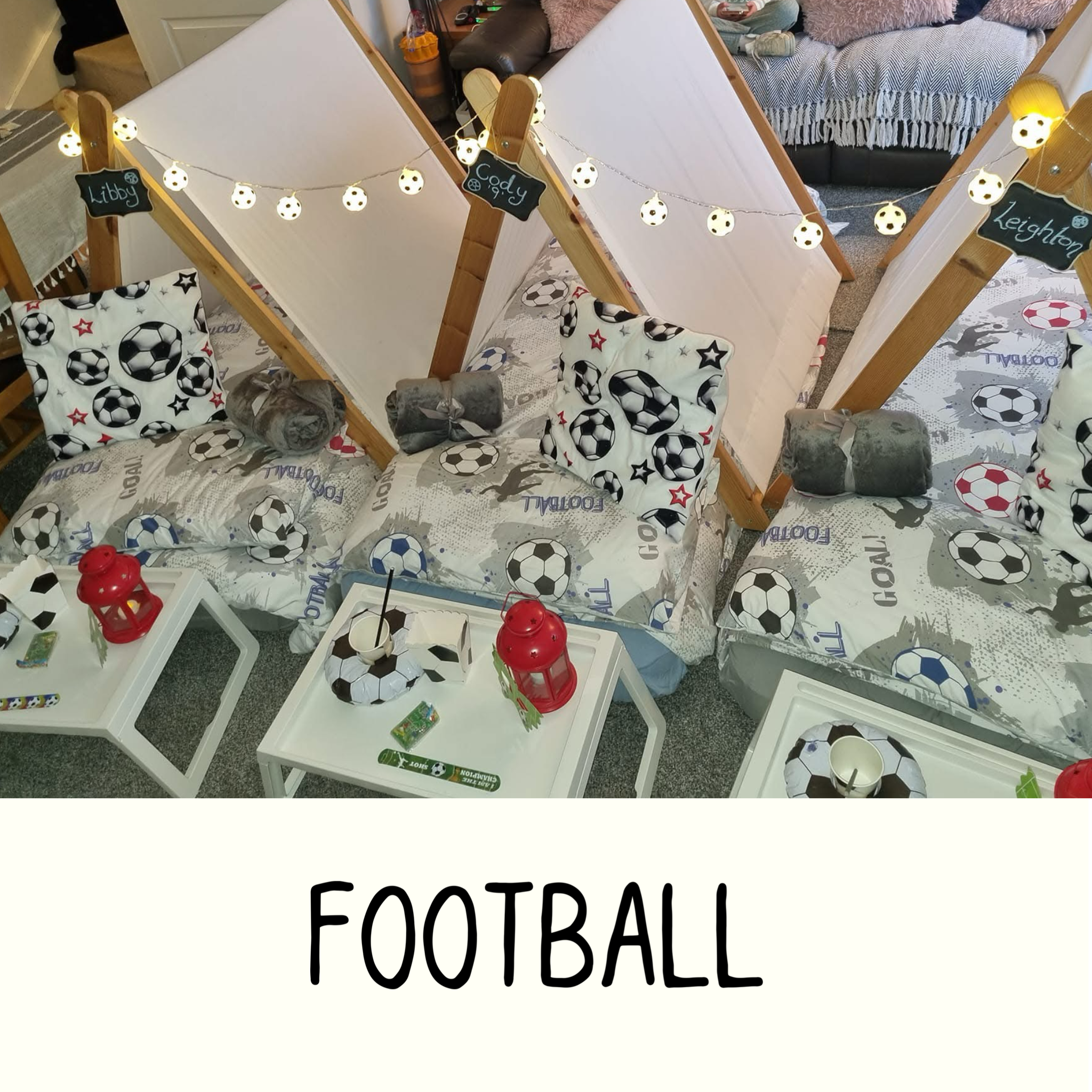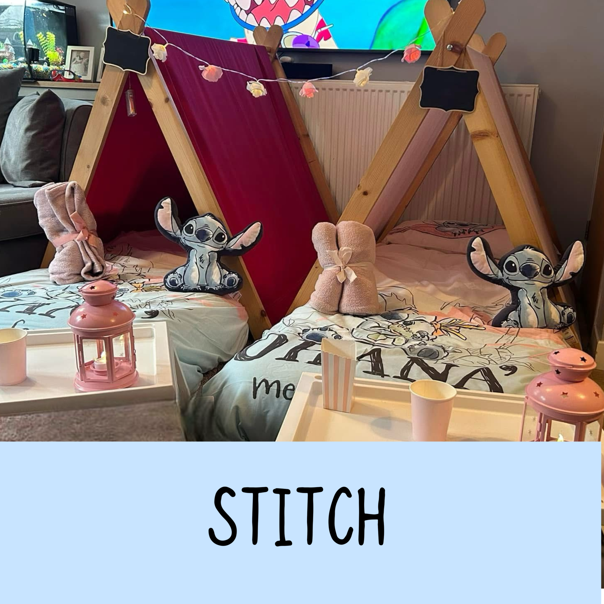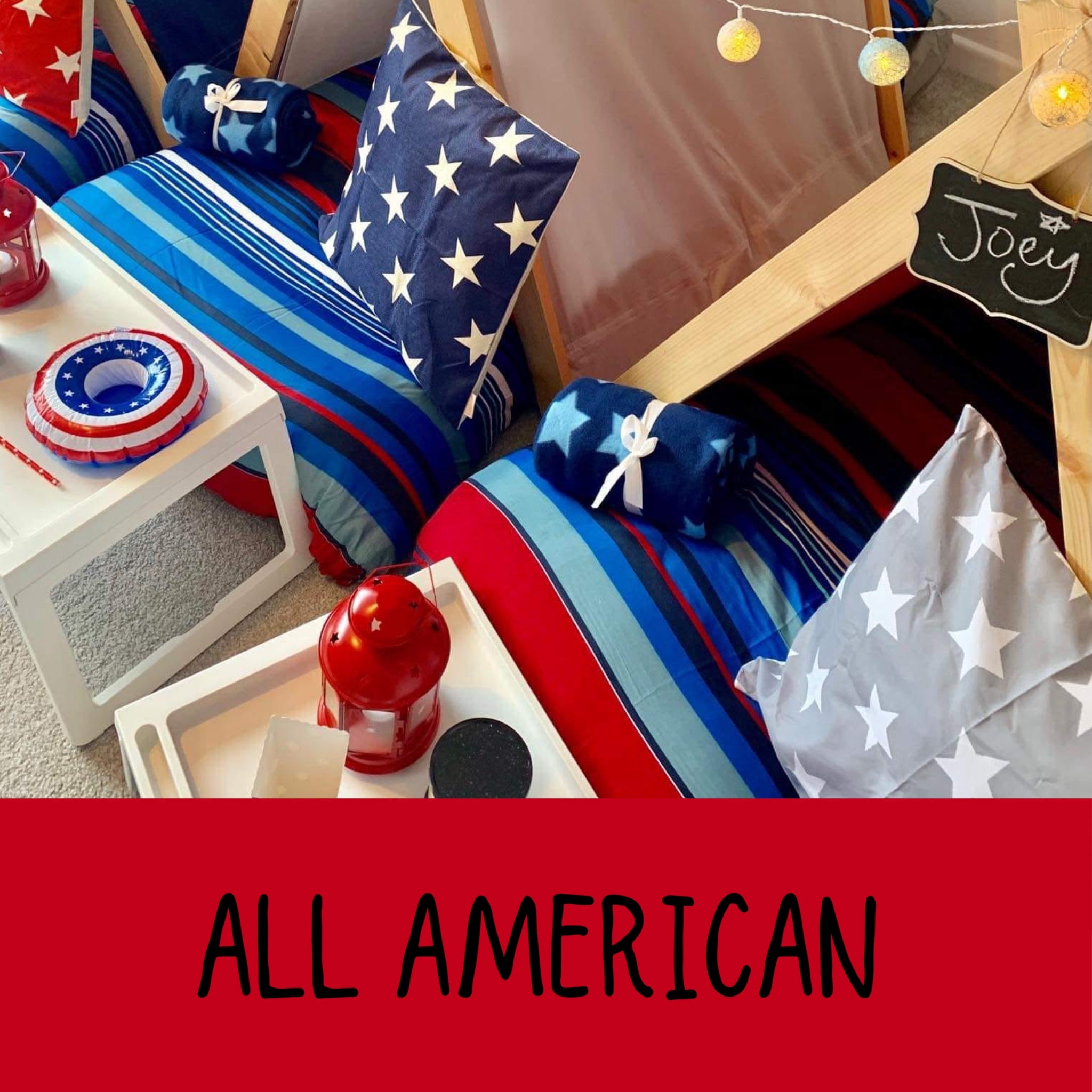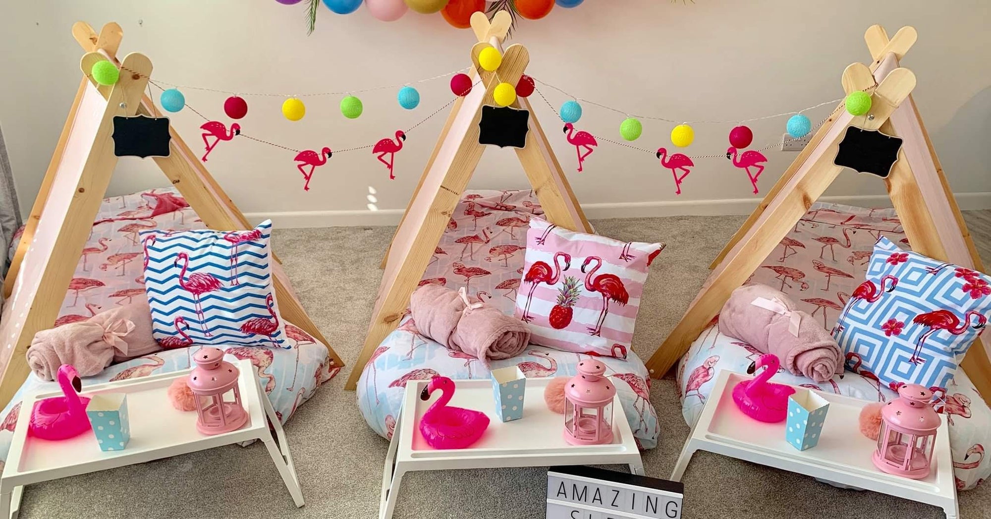 We have a wonderful selection of themes for you to choose from. Our luxury setups include everything you see- teepees, trays, lights, bedding, mattresses and lots of accessories to suit your theme.